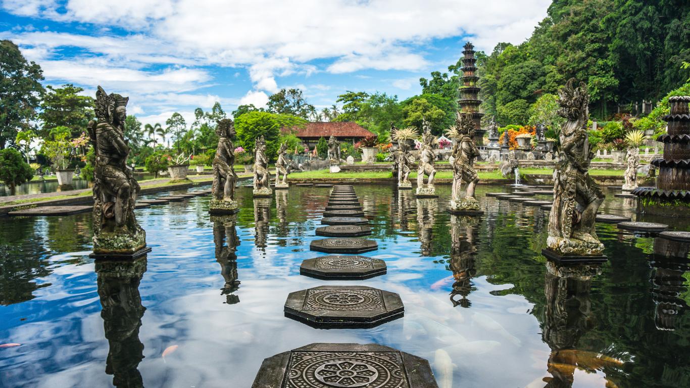 Once a grand royal palace, today Tirtagangga is one of eastern Bali’s most magnificent tourist attractions. The pools and fountains winding through the 1948 water palace and its lush garden full of koi fish and stone carvings draw in many visitors.